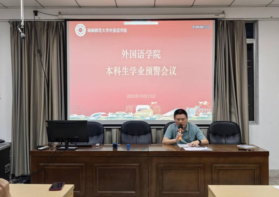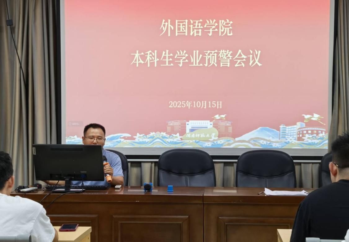 为切实加强学风建设,及时关注与帮扶学业困难学生,提升教育教学质量,10月15日,外国语学院于综合楼中区504会议室召开2025-2026学年秋季学期学业预警专题会议。学院副院长肖仕琼、教务科科长罗鹏兴、教务员庄奕扬、各年级辅导员及全体学业预警学生参加本次会议。