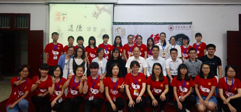 本次讲堂以爱国短片《林俊德:纵死终令汗竹香》拉开帷幕,在与心灵对话30秒中学员们对爱国有了更深的理解:作为一个中国人,时时刻刻热爱着自己的祖国。随后进行诗朗诵《祖国颂》和现场书法表演。全体齐唱《公民道德歌》以及情景剧表演《向尊敬中国人民脱帽》等节目让大家深刻体会即使相隔两岸,即使身处远方,中国依旧是中国人唯一的家。接着,李建民老师讲述了电视剧《人民的名义》中的一个细节,加深了大家对爱国的理解。随后黄伟东书记指出,爱国体现在每一个细节,希望以后能有更多人参加道德讲堂并对付出辛劳的老师和同学表示感谢。最后,主持人讲述了刘胡兰的故事,“生的伟大,死的光荣”是她一生的写照。榜样的力量提醒大家要更加坚定走中国特色社会主义现代化建设之路的信念,更加坚定为民族振兴,为人民造福的决心。全体人员向“德”鞠躬,此次活动在慷慨激昂的宣誓中接近尾声。