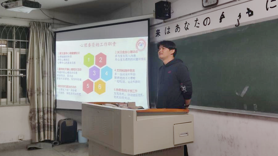 在本次培训中,梁老师讲解了大学宿舍关系与大学生归属感之间的必然联系,强调了良性的宿舍关系于个人成长的积极意义;并由此介绍了心理宿舍信息员的相关工作职责与任务,并且详细地为他们讲解关于危机干预和自杀的危险征兆等相关知识,为大家普及了当面对危机时有效快捷的应对方法。宿舍心理信息员从中学习到,不仅要时常关注同学心理健康,及时识别同学心理异常,关心、帮助、爱护同学,还要能在发现问题后及时向辅导员反映情况,在自己的知识和能力范围内,尽全力帮助同学,做一位心理健康的守护者、美好和谐寝室的建设者。