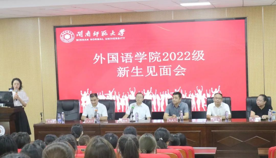 为贯彻落实习近平总书记关于大学生教育的重要指示精神,引导新生更好地适应新环境、新节奏、新生活,确立奋斗目标。9月16日、17日,外国语学院分三场在逸夫楼梯教二召开2022级新生见面会。出席此次会议的有外国语学院党委书记吴晓峰老师、党委副书记朱兆军老师、副院长王羽青老师、团委副书记兼研究生辅导员张啸啸老师、新生辅导员陈安迪老师以及2022级全体新生。会议由张啸啸老师主持。