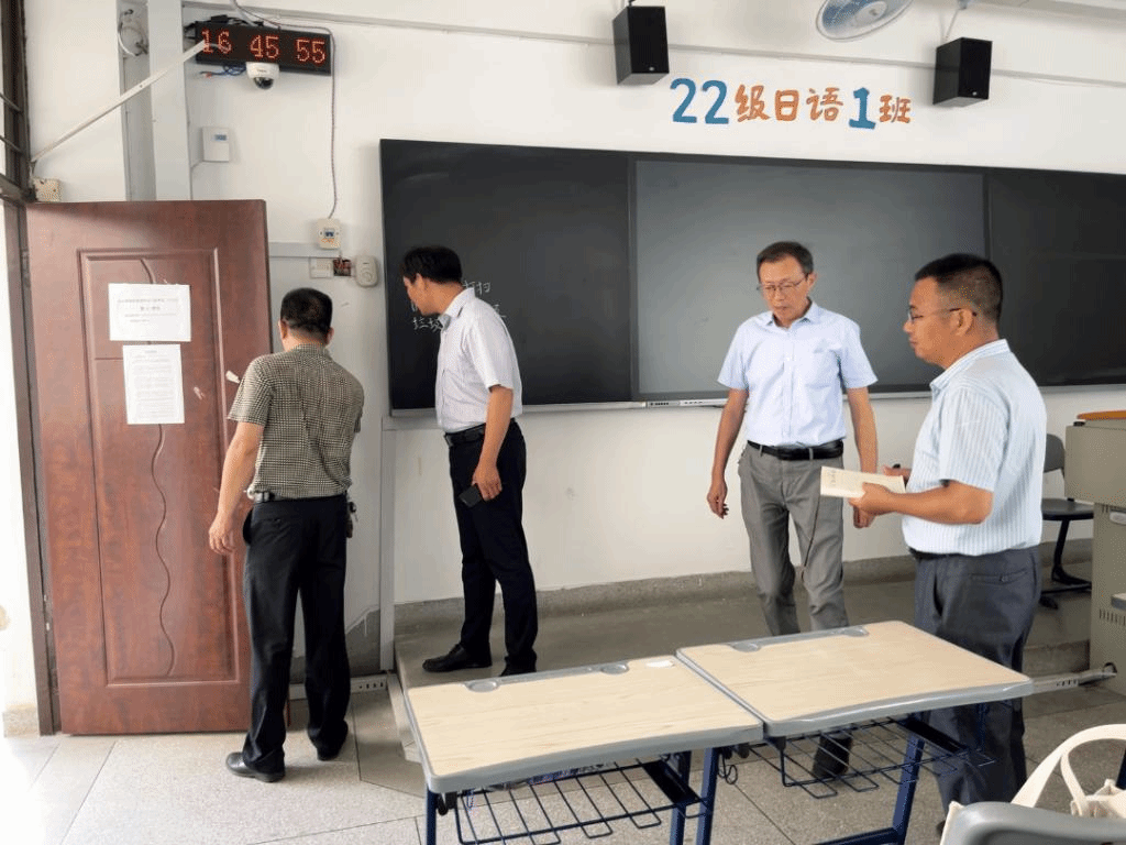 为落实主题教育为民办实事、为师生排忧解难要求,践行服务师生理念,外国语学院将营造舒适的教学环境作为为民办实事项目之一,于2023年5月22日下午组织有关人员对综合楼北区、西区的设备设施及教室卫生状况进行排查。本次排查主要聚焦教室风扇、照明及讲台清洁状况,外国语学院党委书记吴晓峰、党委副书记朱兆军、副院长王羽青、教务科科长罗鹏兴、教务员黄远彬一起参加了排查工作。
