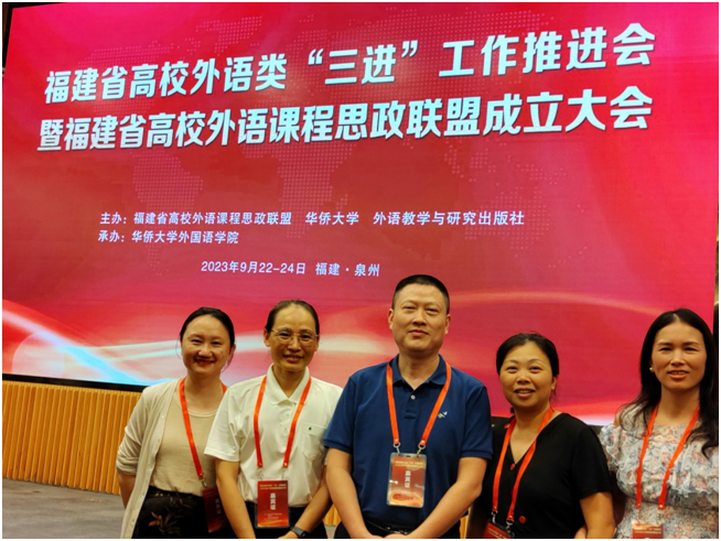 闽南师范大学外国语学院副院长肖仕琼、副教授陈绍恋、大外部主任周苏萍、大外部教研室主任钟晶和庄苑珺等五位教师,于2023年9月22日至9月24日在华侨大学参加了福建省高校外语类“三进”工作推进会暨福建省高校外语课程思政联盟成立大会。