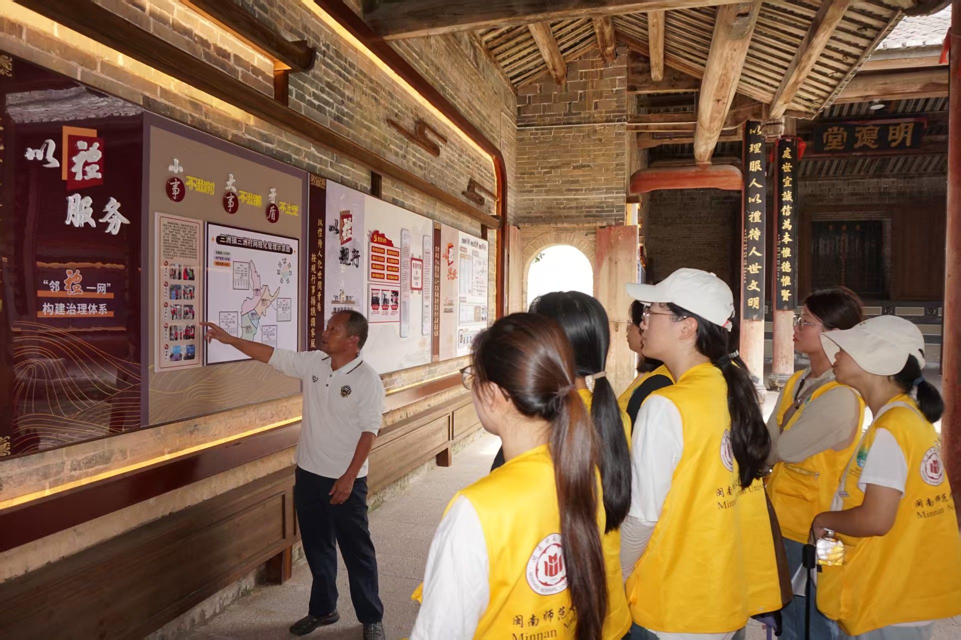 8月3日至4日文化探寻之旅同步开启。外国语学院实践队循着历史轨迹,深入长汀文化场域。走进长汀县博物馆,在展品中感受红色基因与传统文化交融,筑牢文化自信根基;探访长汀古城八喜馆、木工馆,在民俗文化与传统技艺中感受前人的智慧。置身三洲戴氏家庙,感悟家风家训与社会主义核心价值观的契合,凝聚社区共识、涵养文明乡风。在竹编工坊内进行非遗体验,向非遗传承人学艺,看传统手工艺借乡村振兴东风,在创新传承中焕发新生,为文旅融合添彩 。