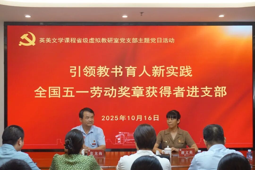 为大力弘扬劳模精神、劳动精神、工匠精神,推动党建与业务工作深度融合,10月16日,闽南师范大学英美文学课程省级虚拟教研室党支部在科技楼北1507举办“引领教书育人新实践——全国五一劳动奖章获得者进支部”主题党日活动。