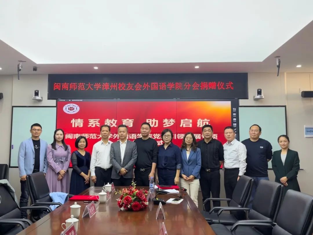 12 月 6 日,外国语学院于综合楼西区 502 举行漳州校友会外国语学院分会捐赠仪式。学院党委书记陈慧燕、院长钟惠芸等院领导、校友会分会会长陈志材及部分校友代表、部分教师及学生代表参加捐赠仪式。学院党委副书记朱兆军主持捐赠仪式。