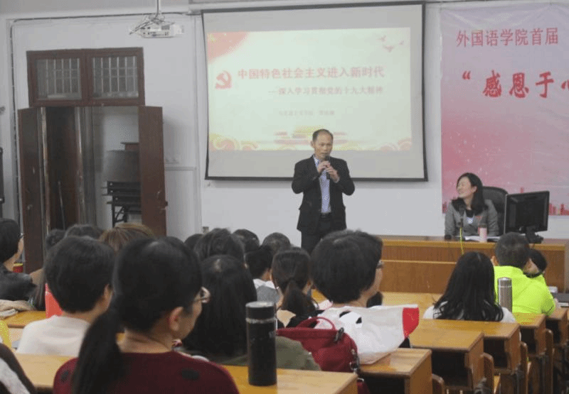 最后,覃老师强调,青年强则国强,青年兴则国兴。作为新时代的年轻人,作为当今时代巨变青年一代,青年大学生身上担着太多的希望和责任,希望各位青年学子能够努力学习党的十九大精神,在学习和生活中认认真真听党的话,踏踏实实跟党走,努力成为有理想、有道德、有知识、有纪律的四有好青年。