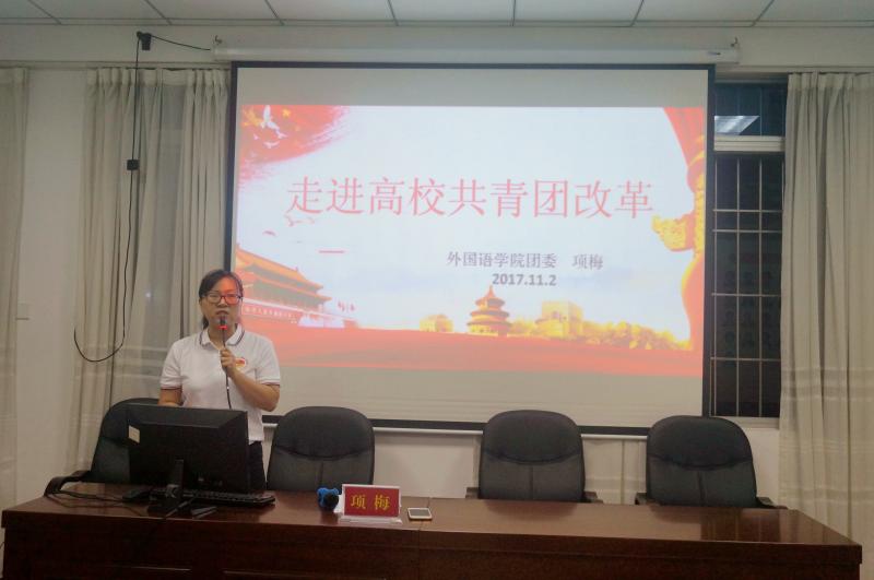 为总结我院共青团改革阶段性工作,深入学习落实十九大精神,11月2日,我院团委副书记项梅以题为“走进高校共青团”为团员青年上团课。