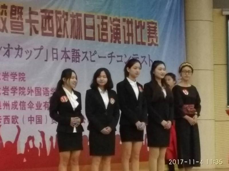 11月4日,在龙岩学院外国语学院举办的“2017年度福建省高校暨卡西欧杯日语演讲比赛”。总共16所本科院校或独立学院的选手参加。经过命题演讲与即席演讲的两轮比拼,我院14级日语专业学生方雪玲喜获三等奖。