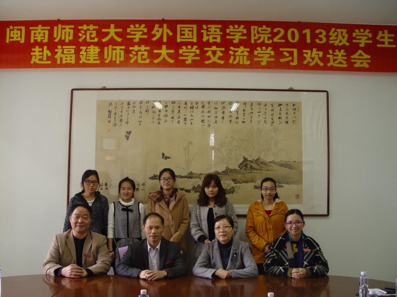 2月28日上午,外国语学院举办“2013级学生赴福建师范大学交流学习欢送会”, 学院领导黄伟东、吴玉玲、苏建华及2013级辅导员黄丽恋出席。