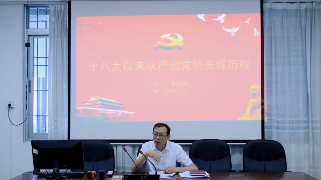 5月30日下午,我院党委书记吴晓峰同志在综合楼中区504给全体在校学生党员开展以“党的十八大以来从严治党的光辉历程”为主题的党课。