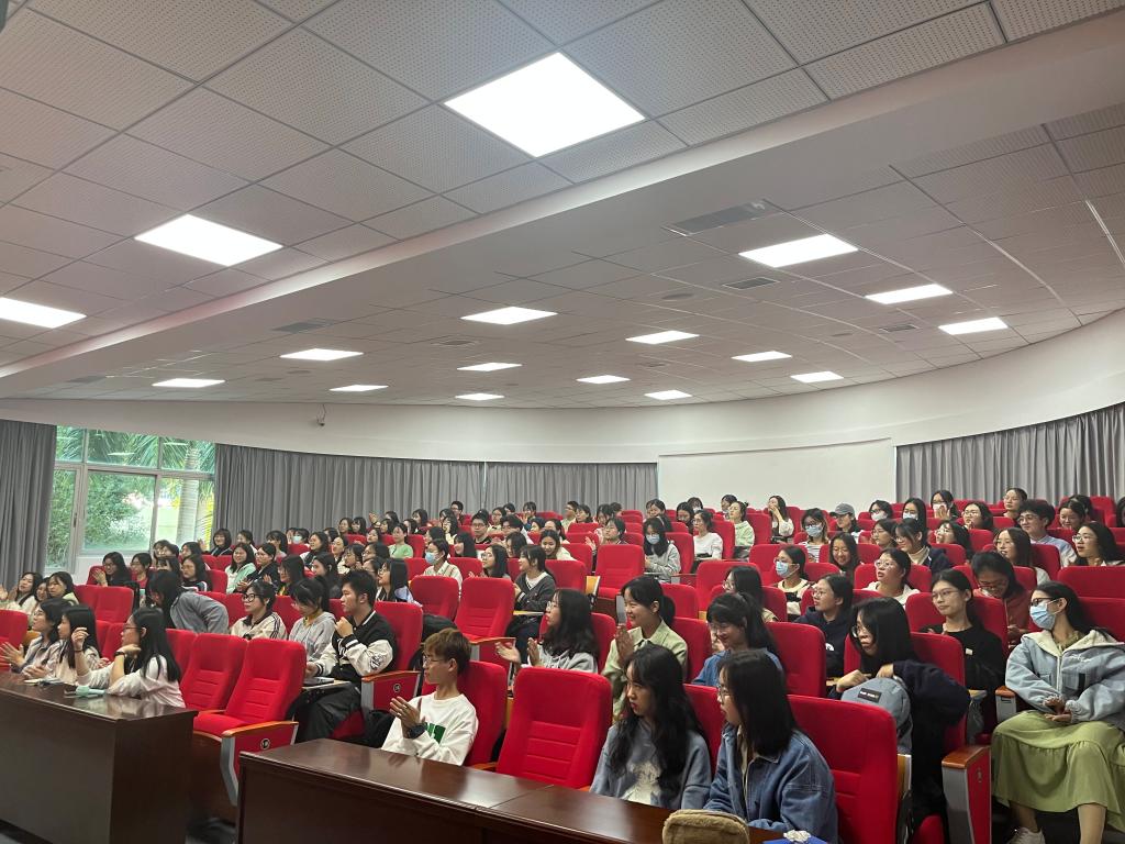 吴玉玲院长首先做了宣讲发言。她从就业形势和专业发展两个角度解读了教育实践的重要性,从学生培养、学科建设、专业评估三个层面说明了教育实习时间调整的必要性。吴院长强调,系统的专业学习对师范生知识素养与能力提升意义重大,学院也是从长远发展的角度对教育实习做出安排。她建议,同学们应根据形势需要转变观念,调整状态、合理规划,统筹安排考研、考编、教育实习与未来的职业生涯规划。吴院长也就考研形势进行分析并对考研准备过程提出了建议性意见。
