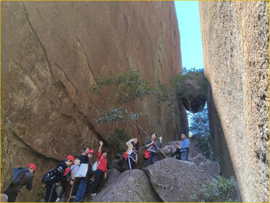 在了解了红色历史,缅怀革命先烈之后,大家开始沿着崎岖的小道向乌山的顶峰——红旗岩攀登。乌山风景优美,崇山峻岭,幽洞深邃,挺拔隽秀,令人流连忘返,让我们领略了无限风光在险峰的壮丽景色。