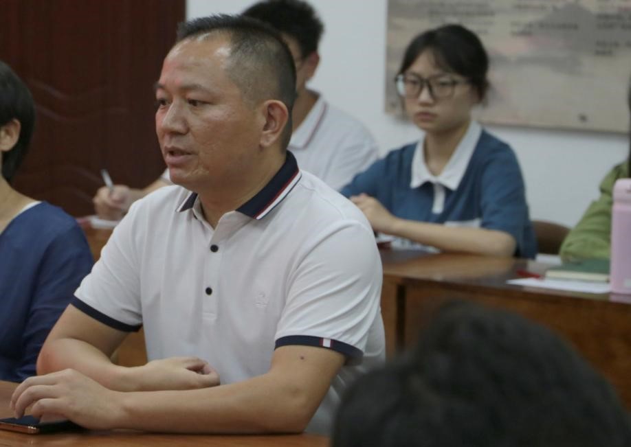 2019级优秀班主任郑伟斌在会上分享其工作经验,他认为新生班主任不仅在生活方面要向学生传授经验,在学业发展和生涯规划方面也要给予相应的重视,他还强调了班委在班级建设中的重要性,呼吁班委积极作为,从而使班级良性发展。