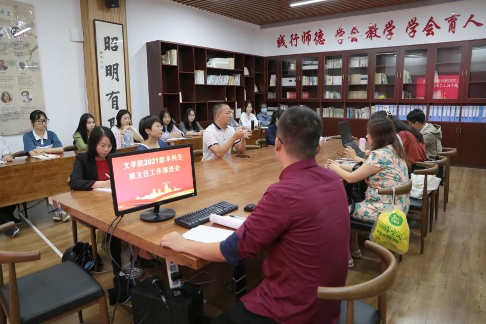 为加强新生班级的建设,推进班主任工作落细落实,加强师生间的交流,10月21日下午,文学院于博东110举行2021级本科生班主任工作推进会。学院党委副书记谢斌斌,副院长杨杏红,各班班主任以及2021级各班班长、团支书参加会议。会议由辅导员林小沛主持。