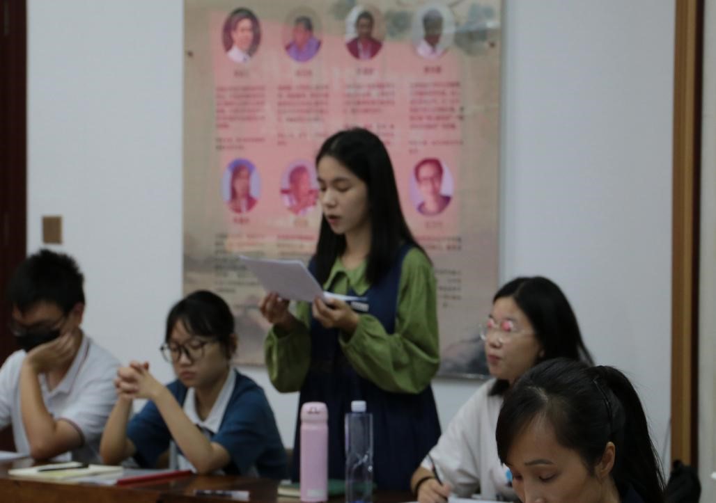2021级本科生班主任刘婉晴从班主任工作方法以及班级建设方式两个方面分享她对班主任这一职务的理解。她认为,作为班主任,应与辅导员相互了解工作内容,平衡好科研和工作生活的关系,平时应多与学生面对面交流沟通,真正的走入班级,走入宿舍,走进学生的心里;作为班级班委,应明确身上重担,班长和团支书更应该着力于班委队伍的建设,在班级工作上合理统筹,服务好每一位同学,提高班级凝聚力。