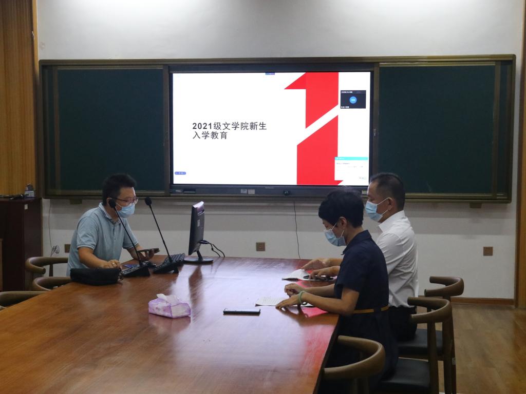 乘风远航启新程,春华秋实绘佳卷。受疫情影响,文学院及时将2021级新生入学教育活动调整为线上进行,保障各项工作有序开展。9月12日上午9:00,新生见面会和第一堂安全教育课在腾讯会议上进行,学院党委书记赵丽霞,副书记谢斌斌和新生辅导员出席,全体新生在线参加。